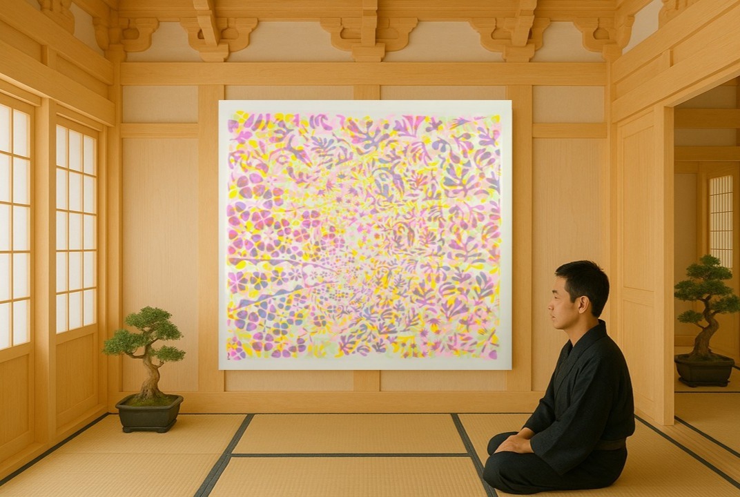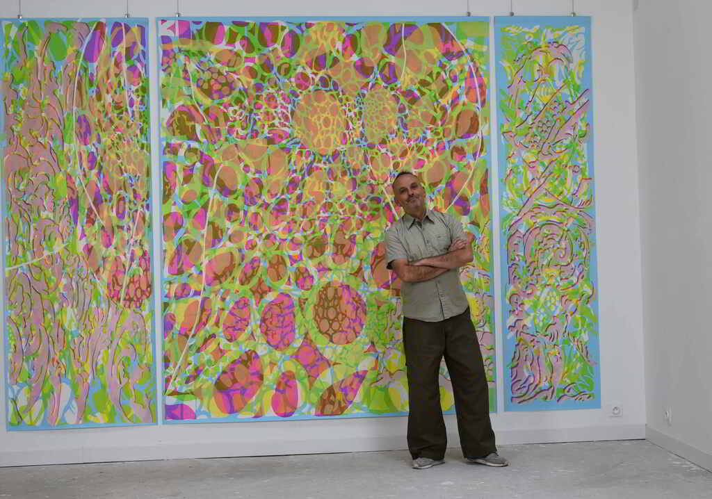 Dive into the world of Achao, where each canvas tells the ephemeral in motion. Here, color dances with light, transparency embraces matter, and the frame disappears to let the paint vibrate. His work on patterns, colors, and transparency forms a contemplative language, inspired by Indian spirituality and the modernity of Matisse. Freed from the frame, his canvases vibrate, inviting one to perceive impermanence in all things.