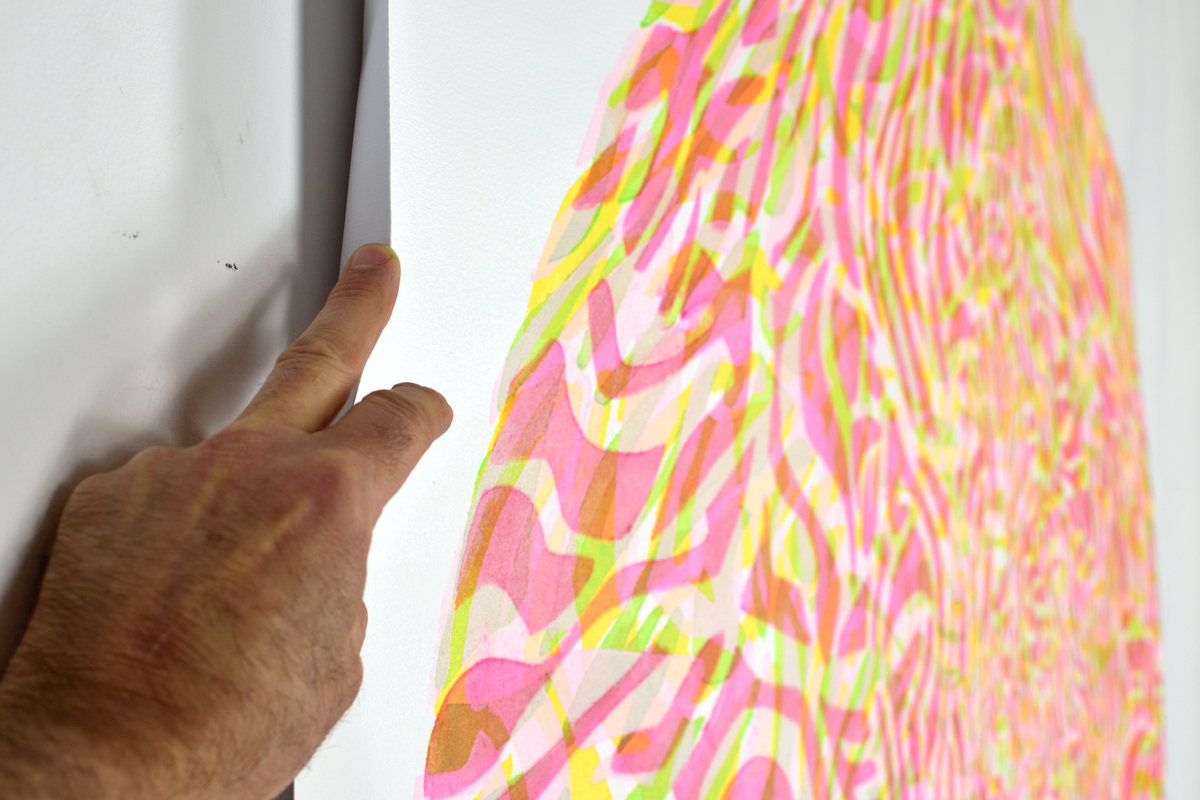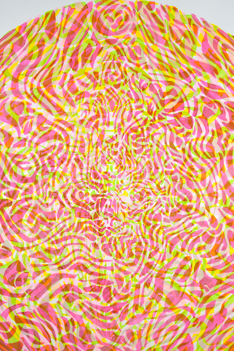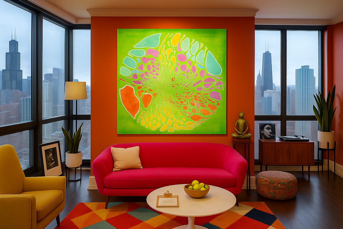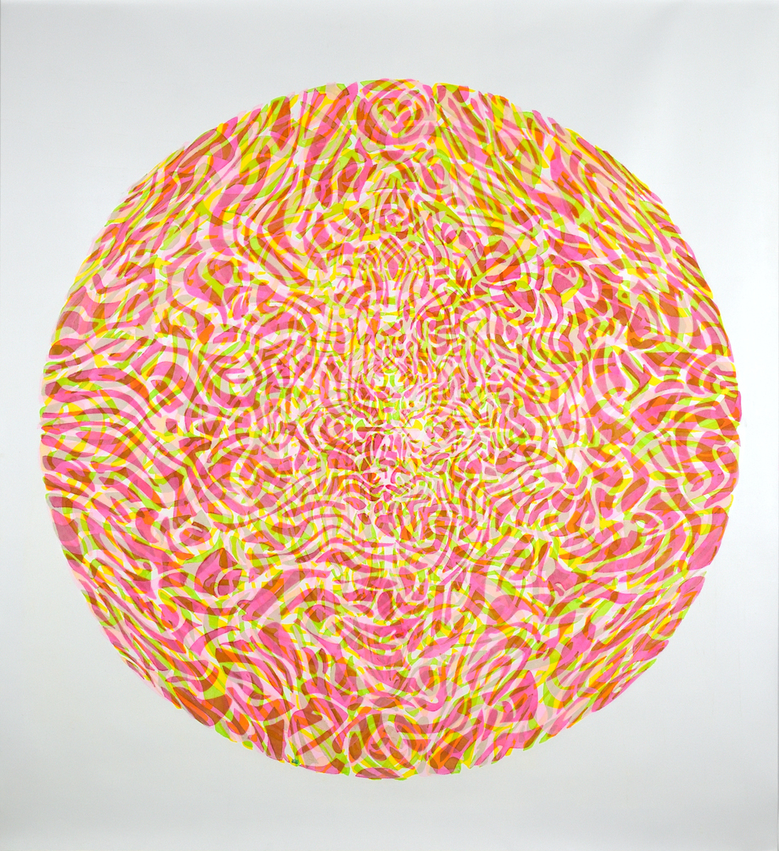 The Mandalas of Achao focus on the central circle, the symbolic heart of fullness and energy flow. Its pure motifs—bubbles, interlacing lines—draw a path toward calmness and introspection. Drawing from Buddhist tradition and the formal freedom of Matisse's cut-out papers, the artist unfolds a work that is both contemplative and vibrant, charged with positive energy. These compositions, often large in scale, act as portals to a rediscovered serenity. The viewer is invited to follow the outline of the shapes, like a visual dance between abstraction and tangible presence. A work that invites a pause, a breath, and a return to the essential.